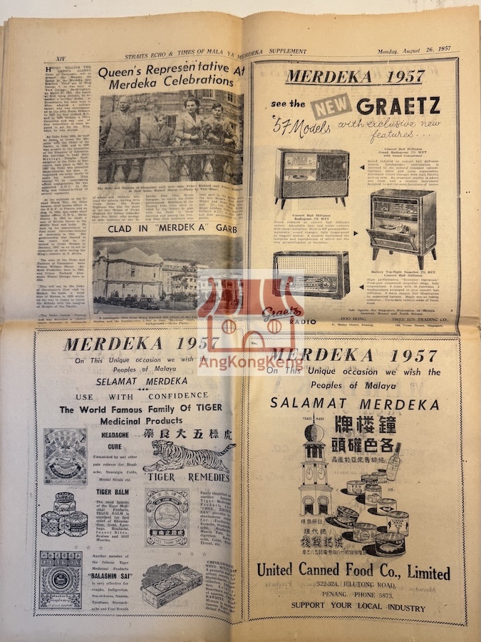 1957年独立日特刊 Straits Echo & Times of Malaya Merdeka Supplement 1957 旧报纸档案 Next Article 新加坡华人庆新年 Singapore Chinese Celebrate New Year-The Straits Times 1939Feb21 请评级 投票1 投票2 投票3 投票4 投票5 1957年独立日特刊 Monday, August 26, 1957 Straits Echo & Times of Malaya Merdeka Supplement 此乃我们收藏的旧报纸,只拍几页供参考!!! Next Article 新加坡华人庆新年 Singapore Chinese Celebrate New Year-The Straits Times 1939Feb21